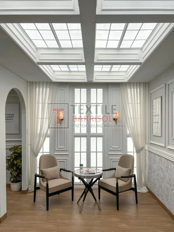 A Textile Flat Stretch Ceiling is a modern ceiling solution made from a PVC or polyester fabric membrane stretched tightly across a perimeter track or profile, creating a perfectly smooth and even surface.
