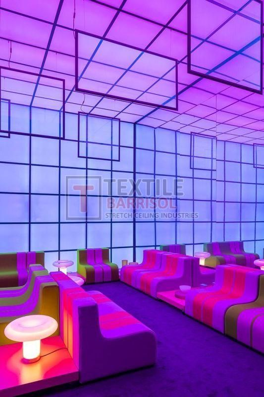 Textile Barrisol stretch ceilings integrated with MADRIX lighting control systems offer a cutting-edge solution for dynamic, immersive LED installations. Widely used in architectural, entertainment, and hospitality projects, these ceilings combine modern stretch fabric aesthetics with advanced RGB or RGBW LED effects.