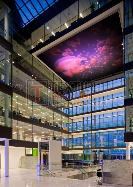 Custom Branding: Logos, patterns, and themed designs can be printed directly on the ceiling