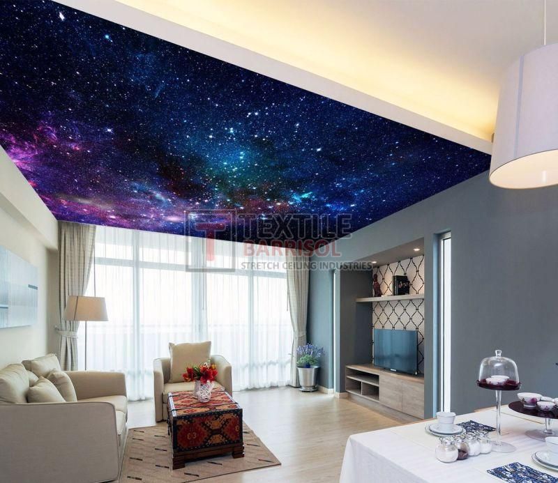 PVC Stretch Ceiling: Available in glossy, matte, or satin finishes; supports high-quality printed designs.