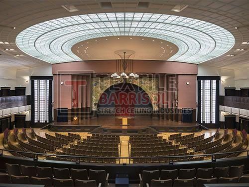Acoustic stretch ceilings for sound control in large halls