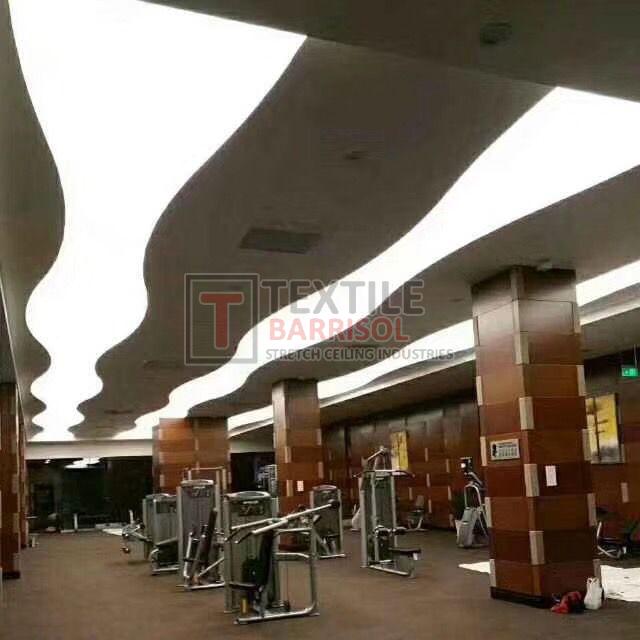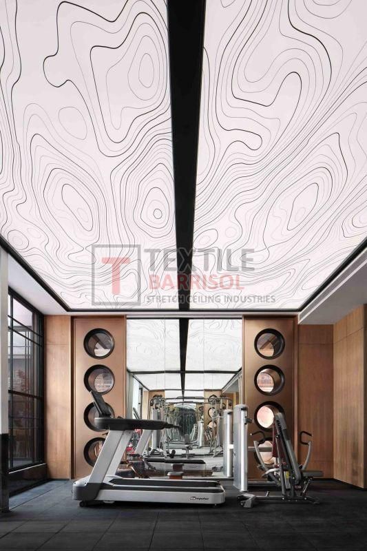 A Textile Gym Stretch Ceiling is a modern ceiling solution designed specifically for fitness centers, gyms, and sports facilities. It uses a high-quality PVC or textile membrane stretched across a lightweight aluminum frame, creating a smooth and durable ceiling finish.