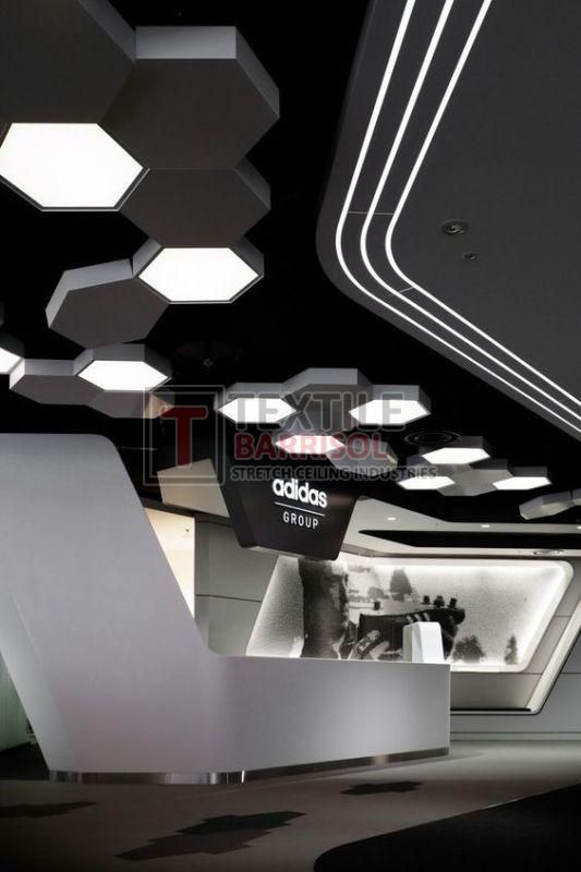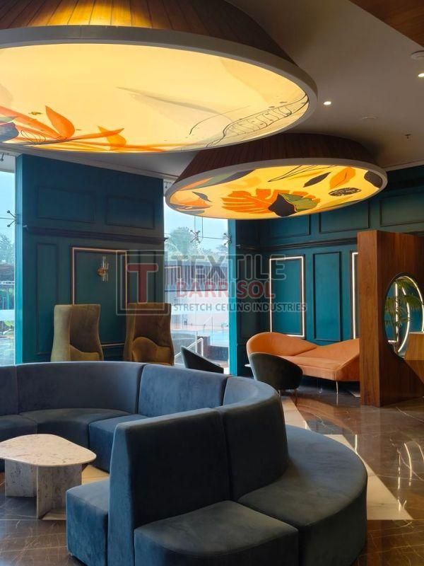 A Textile Office Stretch Ceiling is a modern and versatile ceiling solution designed to enhance the look, functionality, and comfort of workspaces. It consists of a lightweight PVC or textile membrane stretched across a custom-made frame, allowing for smooth finishes, stylish designs, and practical integration of lighting systems.